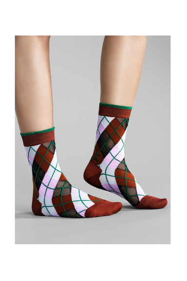 DETAILS: Add a touch of classic charm to any outfit with these Argyle Sheer Crew socks. Featuring sheer panels and a preppy design, they'll elevate...