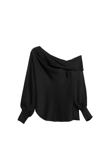 DETAILS: Modern yet flowing long-sleeved top cut in textured, hammered silk. Crew neckline and slightly belled sleeve. Features a curved drawstring...