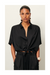 Short tie-front blouse in fluid viscose satin. Elasticated waistband at the back.