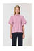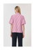 This cherry red striped poplin shirt features balloon sleeves tied with thin tone-on-tone bows, a classic collar, and a straight cut. It fastens at the front with small concealed buttons.