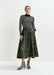 Floral-Jacquard Midi Skirt in Khaki & Dark Blue