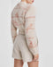 The Jacquard Knit Sweater is cut in RWS and RMS certified wool qualities. The sweater has a loose fit with a cropped, fitted hemline, long sleeves, and a rounded crew neckline.