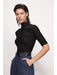 Tyla top in black by Sabina Musayev. Comes with 3/4 length sleeves and a mock neckline.
