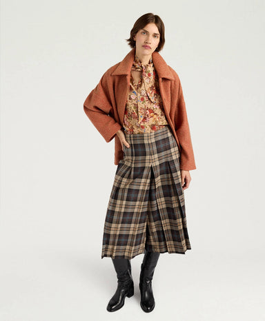 Midi culottes in tartan wool twill. Catherine combines the comfort of pants with slash pockets with the iconic look of a pleated skirt. DETAILS: ...