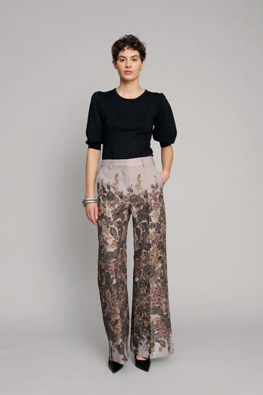 DETAILS: Wide leg trouser with front pleats Back of waistband is elastic Zipper & tab closure with hidden inner button pockets Wide through t...