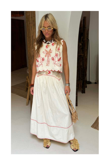 The Brigette Long Skirt exudes effortless elegance with its flowing design and intricate details. Crafted from viscose crinkled chiffon, this maxi-...