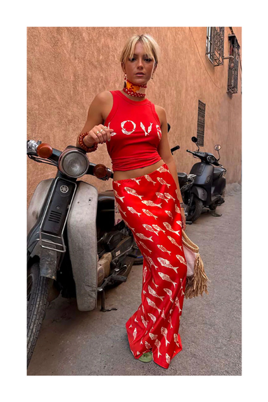 The Adele Skirt is designed to make an entrance. Cut on the circle from saturated red crepe, this midi length beauty swirls effortlessly with every...