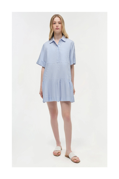 The Cris Cotton Mini Dress in Blue Hydrangea Stripe. Crafted from striped novelty shirting, this short-sleeve shirt dress combines crisp lines with...