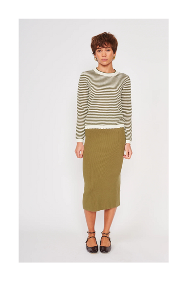 DETAILS: Cozy and stylish, this vintage-inspired striped sweater features a classic Cocoa Ivory stripe with charming scallop edge trim. The contras...