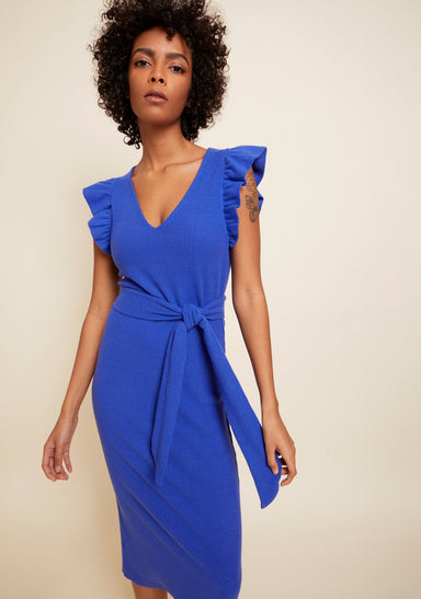 DETAILS: The Imara is a midi-length sweater dress in a ribbed wool blend. Its funnel neckline and fitted silhouette provide a sleek look, with tubu...