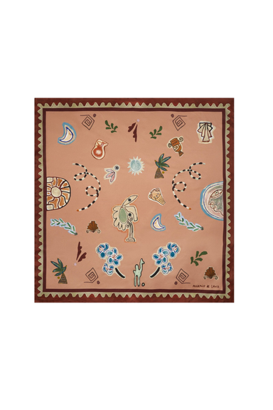 DETAILS: Artwork in collaboration with Laurence Leenaert Printed square scarf Hand-rolled edging Composition: 100% Silk Twill