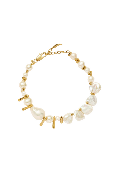 Pearls, reimagined. This statement pearl bracelet features three types of pearls with potato, Keshi and baroque beads offset with organic-inspired ...