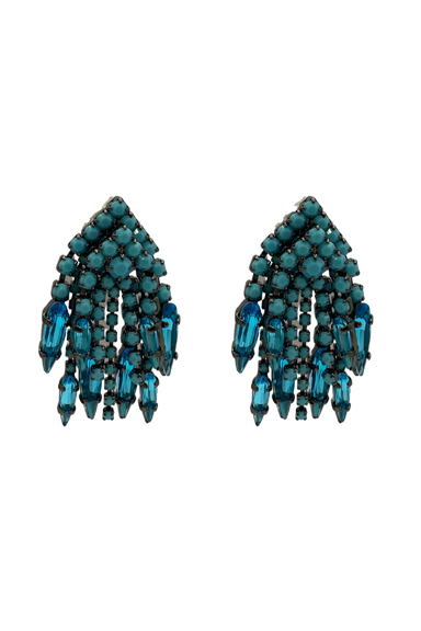 DETAILS: Fine gold-plated Fortaleza Plume earrings, featuring a crimped centerpiece and an overlay of genuine feathers in different colors.