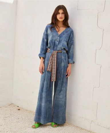 Short dress in printed stretch pure silk satin. Aster has a comfortable “A” line with polo shirt buttoning, shirt collar and deep cuffs. The back f...