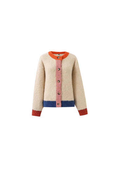DETAILS: • Colorful curly vest• Straight cut• Soft and fluffy looped knit• Button closure in front• Contrasting details: neckline, cuffs, button pl...
