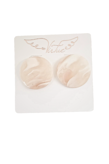 DETAILS: Nickel-free and lightweight, these earrings are crafted from quality acrylic in a striking wavy disc design. The soft tan hue brings an un...