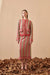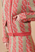 The Lazos Jacket combines graphic pattern and refined tailoring. Crafted in a textured woven fabric, it features vertical rope-inspired motifs in coral and sage green, framed with matching patterned trim along the collar, cuffs, hem, and flap pockets. The boxy silhouette offers a modern, structured fit, making it perfect for pairing with the matching Lazos Skirt or styling over neutral trousers for a patterned pop.