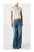 Cut from a perfect mix of cotton and lyocell, resulting is a super lightweight denim, this mid rise silhouette strikes the perfect balance between modern and timeless. The wide leg and full dramatic length is perfect for summer. Denim hem. Zip fly.