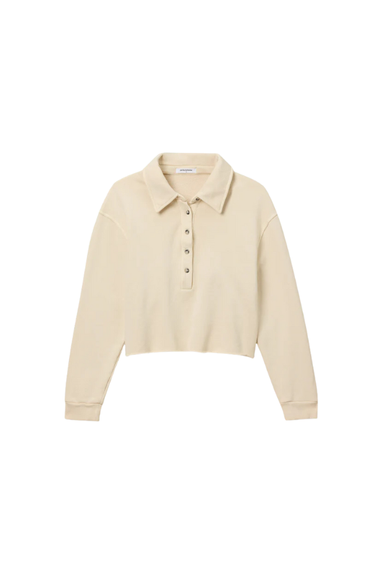 The Vinny top is crafted from heavy fleece and finished with a raw hem for a relaxed, lived-in look. designed with a collared neckline and button p...