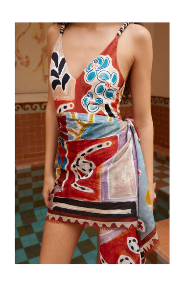 DETAILS: Product Details Artwork in collaboration with Laurence Leenaert Printed rectangular pareo Eyelash fringing Composition: 100% O...