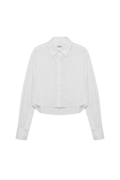 The Renata Shirt in White. Elevate your wardrobe with this crisp cropped button-down. Designed with a sharp collar and a clean front, its tailored ...