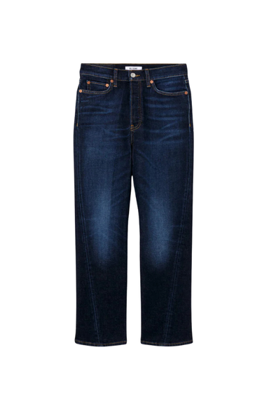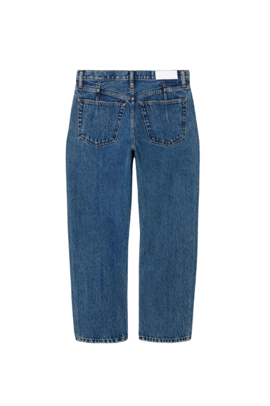 Sitting just below the waist with a dropped rise, this trouser features a subtle barrel shape. Finished with trouser-style pockets, a tailored hem,...