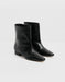 These are versatile, semi-square toe wide ankle boots. The minimal incisions eliminate unnecessary cut lines and add hidden stitch details to the inside of the foot. The wide boot hem makes your legs look slimmer, and the loose fit makes them perfect for all seasons. These boots are made of soft Italian cow leather, and the wrinkles that form the more you wear them create a stylish look.