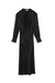 The Signature Talita Dress in Black. The elegant ease of a wrap silhouette, rendered in high-sheen satin with bishop sleeves. Gentle draping creates a deep v-neckline, enhancing the gown's sensual tactility. A SIMKHAI signature.