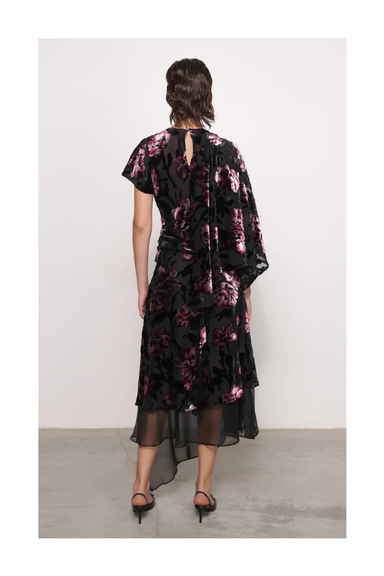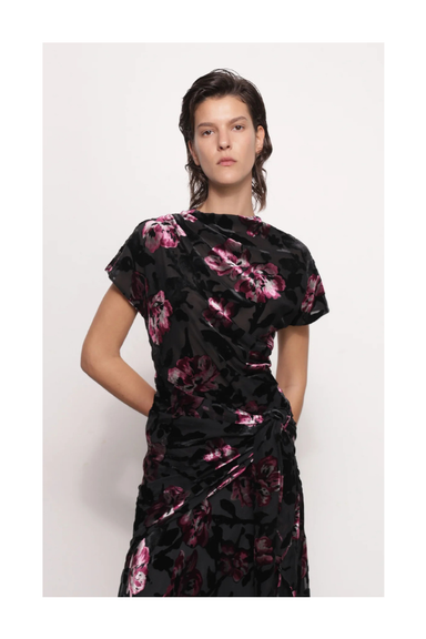 DETAILS: Evening floral devore top by Sabina Musayev, Asymmetric high neck with draped fabric detail, Invisible zipper at the side. For every even...