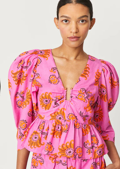 Floral Turtleneck Blouse in Poppy Red by Alessandro Enriquez