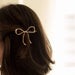Our hair clip features a sleek metal bow with shiny finish that adds a touch of sophistication to any hairstyle.  It is made from high-quality metal for long-lasting use.  It is easy to clip into place for quick styling. It is equipped with a strong barrette clip that keeps hair in place without slipping. Ideal for thick, thin, straight, or curly hair types.