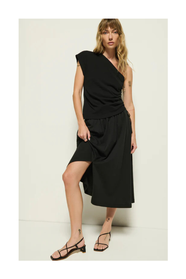 Effortless, elevated, and endlessly chic. This skirt does it all with an easy pull-on elastic waistband, on-seam pockets, and a center front slit detail. This one comes in Jet Black.